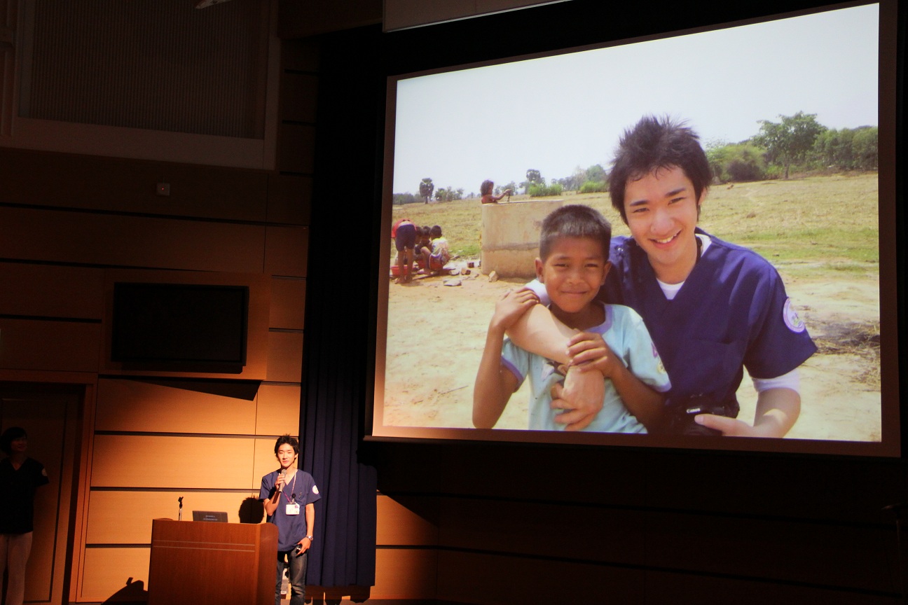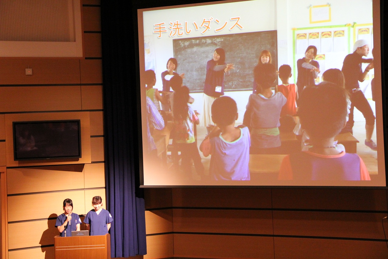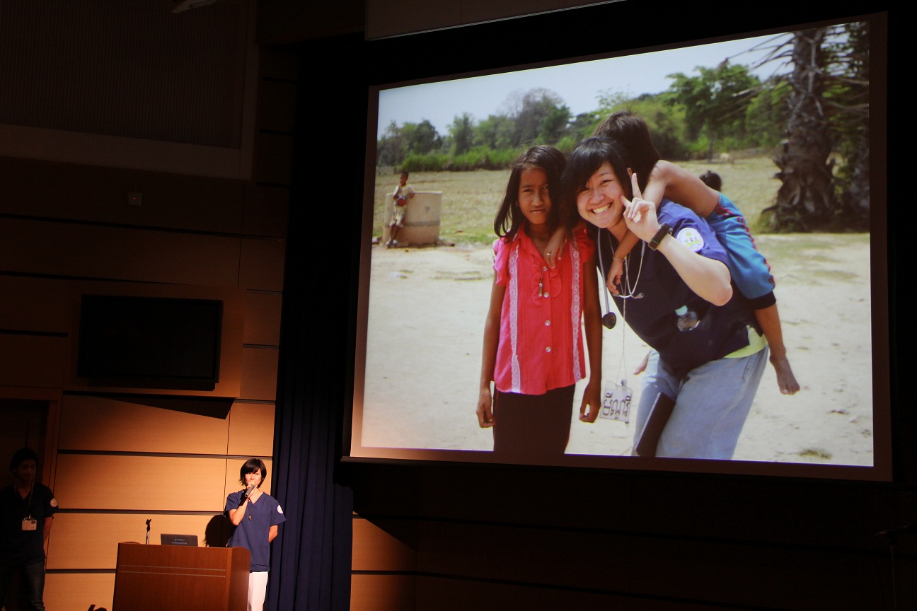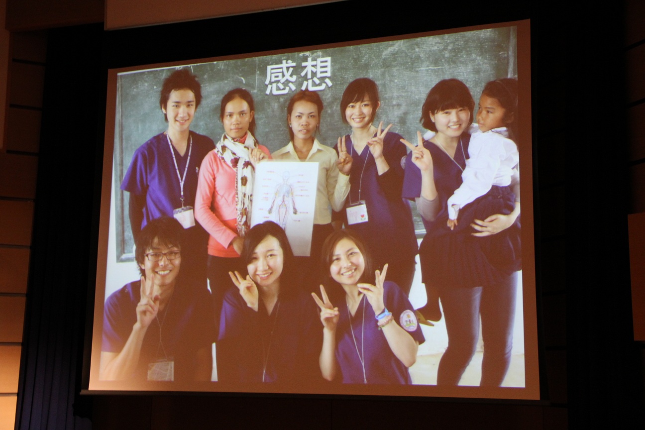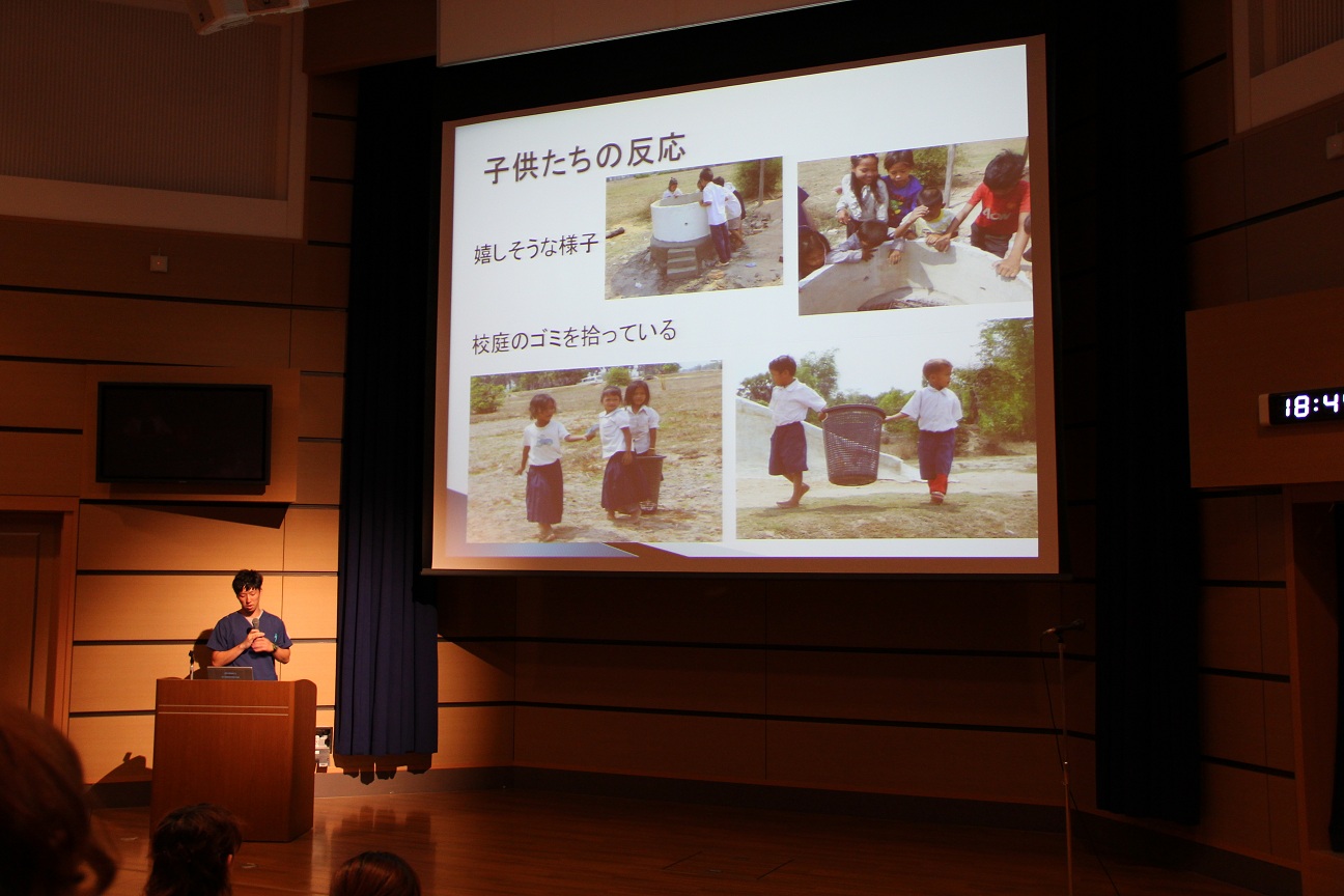 今回はカンボジアを訪れ、現地の学校で健康指導を行ったり、衛生状態改善の一環で焼却炉を作ったりする活動を行いました。報告する学生の様子から充実した活動であったことが伝わってきました。