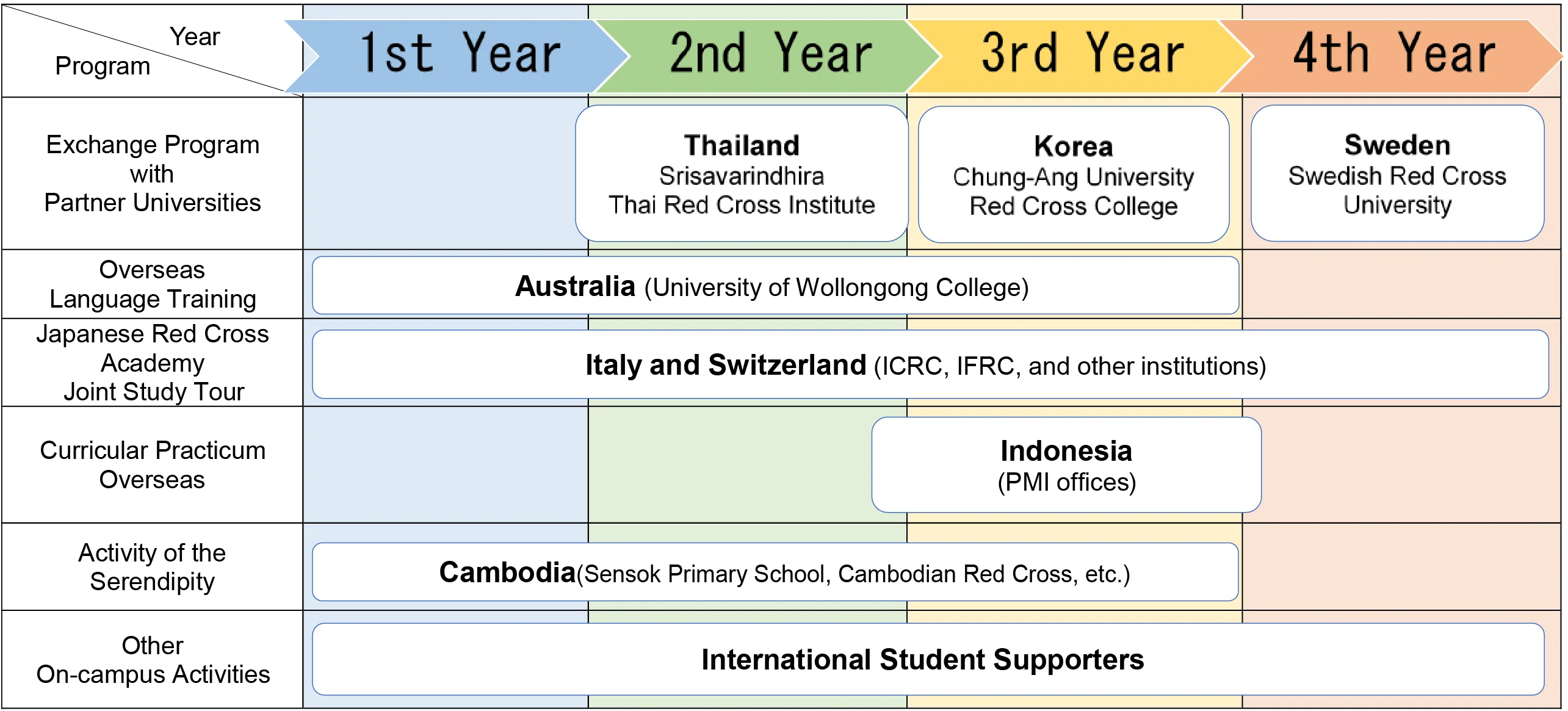 We have established Memoranda of Understanding (MOUs) with Red Cross universities overseas and offer exchange programs available to our students. These programs provide meaningful opportunities for academic, personal, and professional growth, fostering global perspectives on healthcare while deepening understanding of the humanitarian principles of the Red Cross.