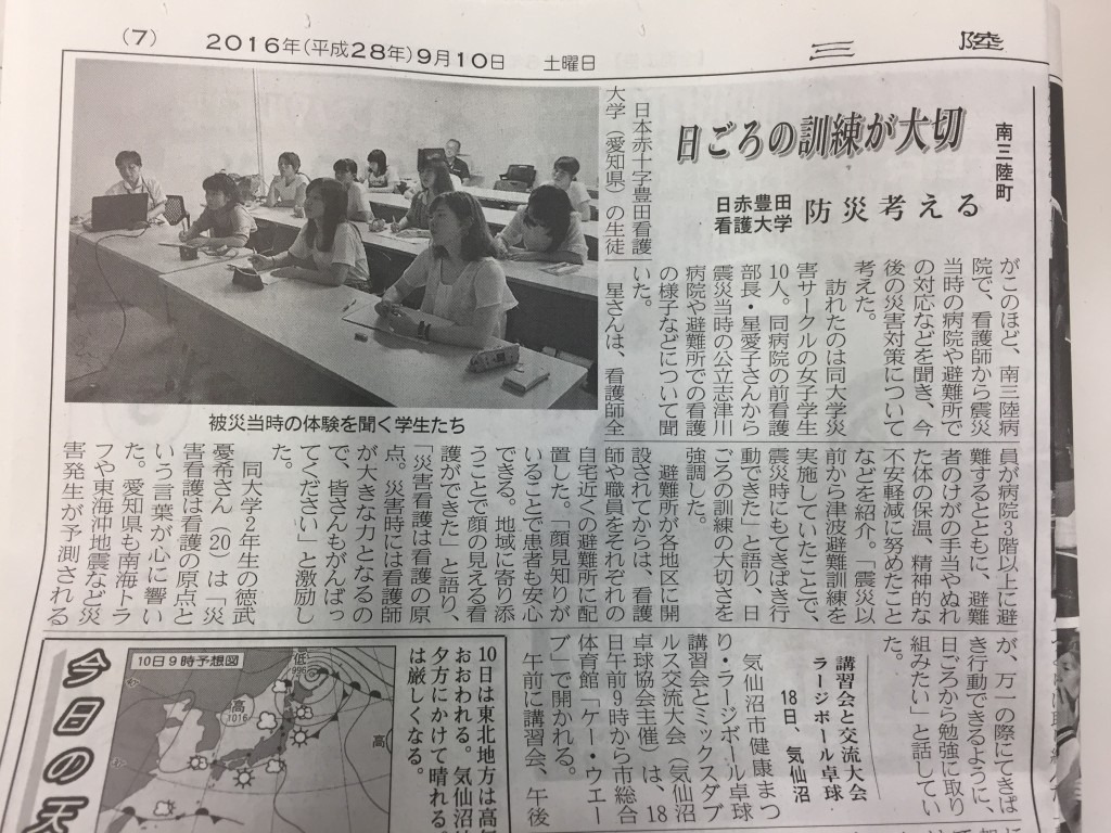 南三陸町でのボランティアに取り組んだ学生が現地の新聞に紹介されました