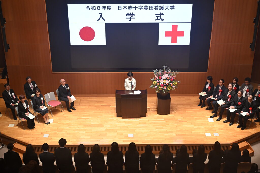 式典では、学長の式辞に続き、新入生代表が誓いの言葉を述べ、看護職を目指す者としての自覚と責任、そして学びへの意欲を新たにしました。