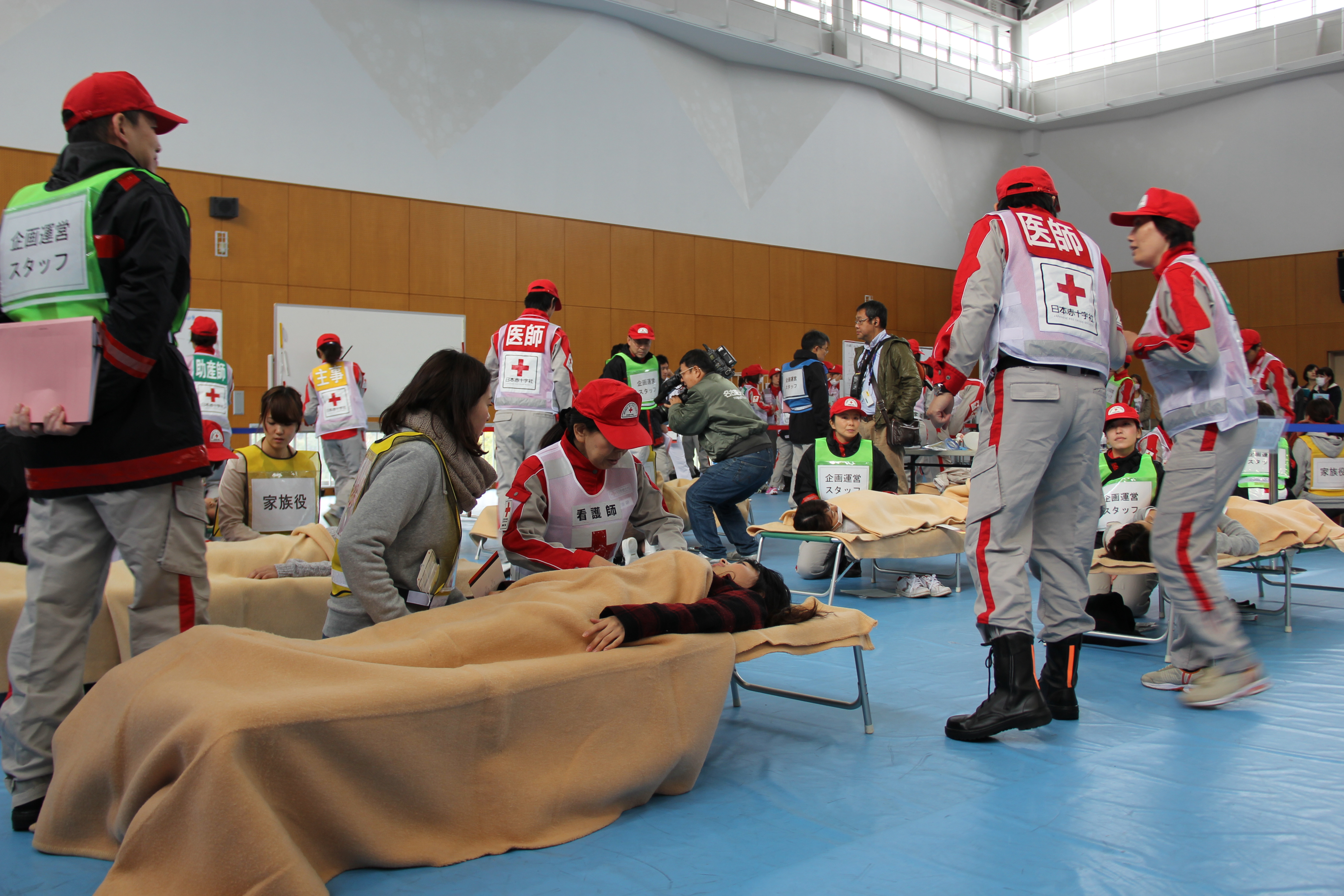 去る平成26年11月19日~21日の3日間、本学にて日本赤十字社愛知県支部主催の大規模災害救護訓練が行われました。